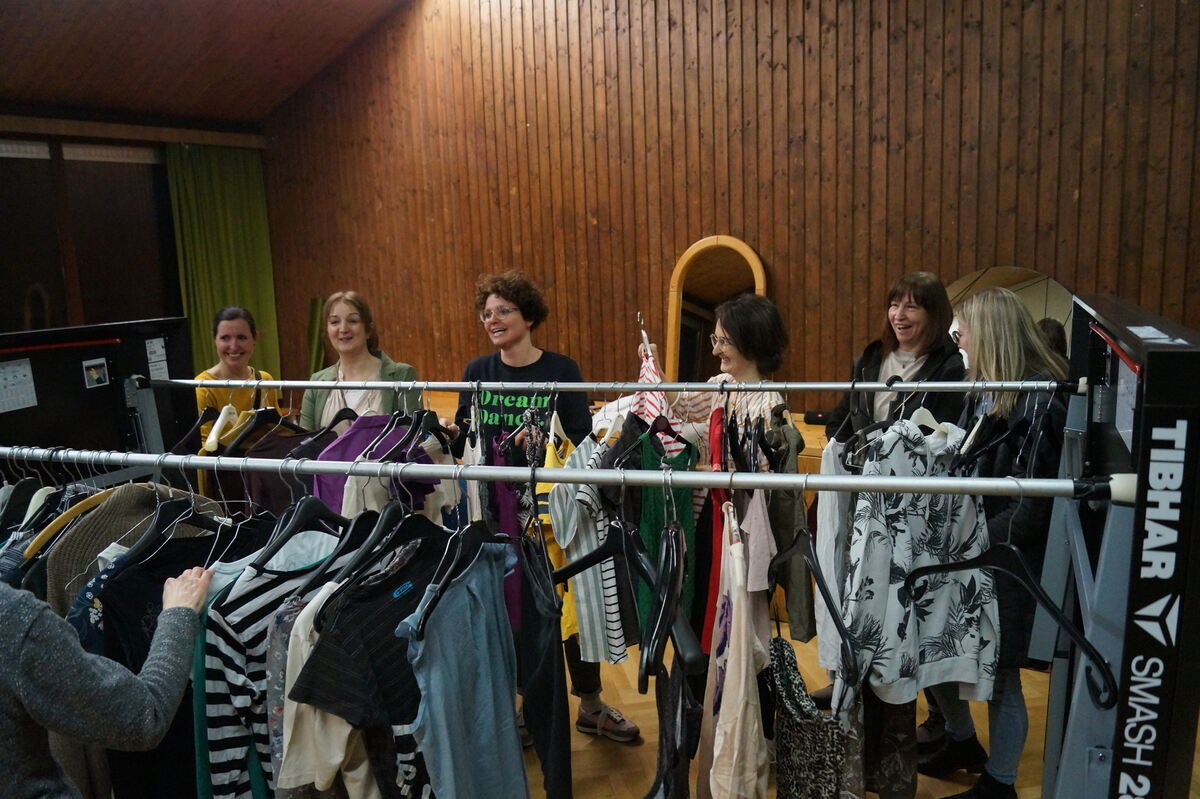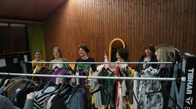 Viel Auswahl und noch mehr gute Laune beim Kleidertausch im Gomadinger Sportheim verzeichneten die Tauschfrauen Beate (von links), Katrin, Mimi, Sonja und ihre Kundinnen.