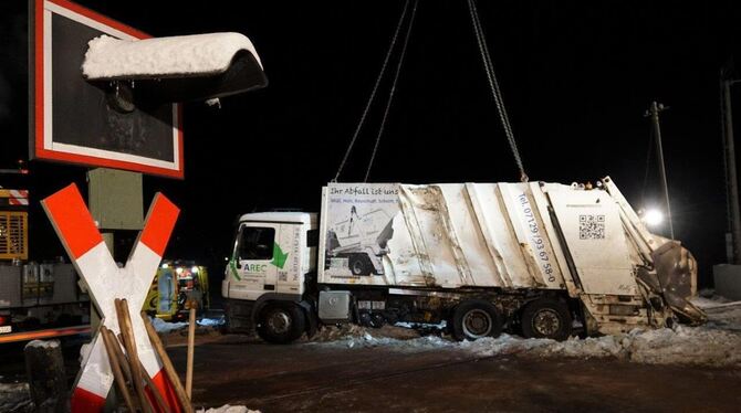 Der Triebwagen und der Lkw sind am Freitagmorgen zusammengestoßen. Dabei ist der 56-jährige Zugbegleiter schwer verletzt worden. Der 45 Jahre alte Lokführer erlitt leichte Verletzungen. Nach Angaben der Polizei wollte der Fahrer eines Müll-Lastwagens über den unbeschrankten Bahnübergang fahren und hat dabei offenbar das Rotlicht übersehen. Er gab später offenbar an, von der Sonne geblendet gewesen zu sein. Auch den herannahenden Zug der Schwäbischen Alb-Bahn übersah er.