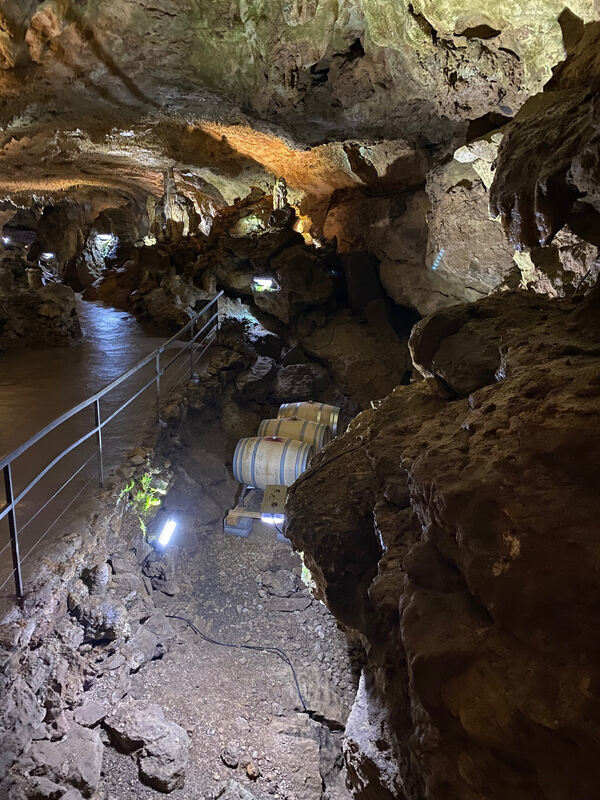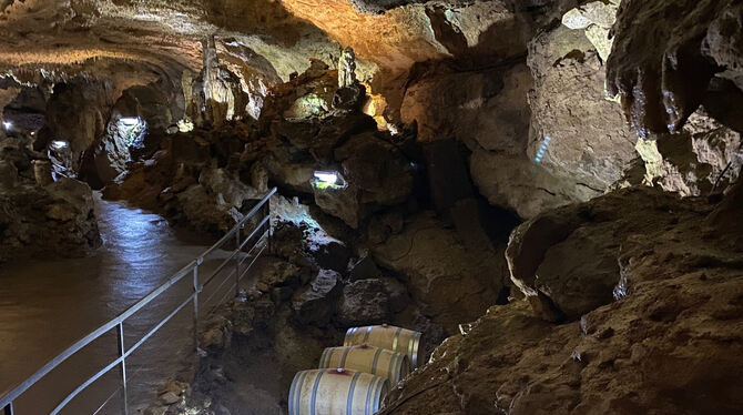 SONNENBÜHL. Gewachsen in der Sonne, gelagert im Eichenfass, gereift in der Tiefe. Die Gemeinde Sonnenbühl und die Weingärtnergenossenschaft Metzingen Neuhausen e. G. haben einiges gewagt, als sie im Frühjahr 2023 drei Barrique-Fässer mit einer feinen Cuvée aus Cabernet Dorsa, Cabernet Mitos und Lemberger in der Bärenhöhle zum Reifen einlagerten.