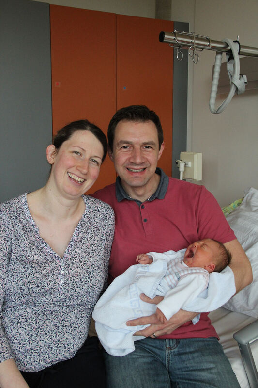 Manuela und Stefan Bez aus Undingen mit ihrem Sohn Felix, geboren am 24. März in Münsingen. Sie haben sich bewusst für die Albklinik entschieden, weil sie sich eine familiäre Umgebung wünschten. »Das war top hier«, sagt Stefan Bez. FOTO: DEWALD