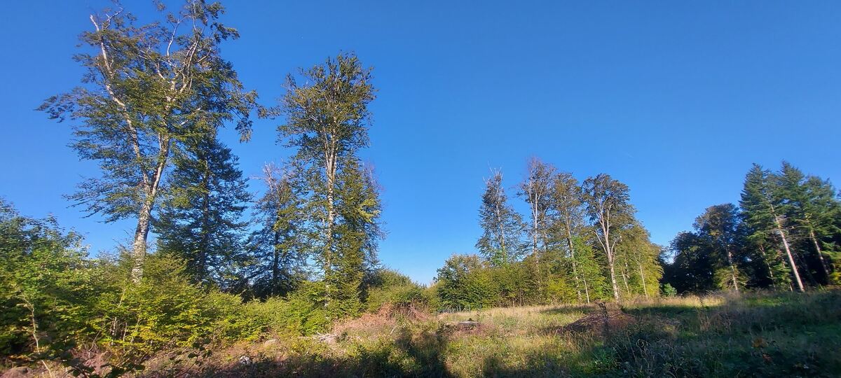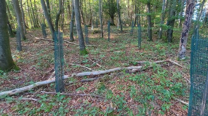 Zwei breite Schneisen hat das Sonnenbühler Forst-Team in den Wald am Hohfleck geschlagen. Auf ihnen sollen sich jeweils zwei Windräder drehen, ein fünftes wird im Staatsforst errichtet.