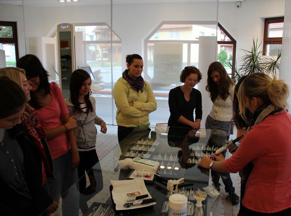 Wie wird ein Hörgerät angepasst? Freibühlschüler informierten sich bei Optiker und Akustiker Ulf Gaus. FOTO: JUNGBECK