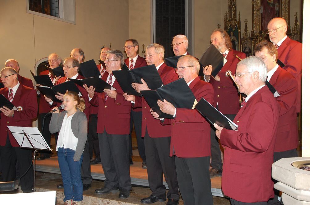 Zwischen den Männern der Hohensteiner Sängerrunde glänzte die zehnjährige Amelie Bindewald aus Bernloch. FOTO: HÄUSSLER