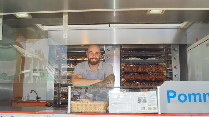 Maik Dehner steht mit seinem Wagen in Münsingen und wartet auf Kunden. FOTOS: WURSTER