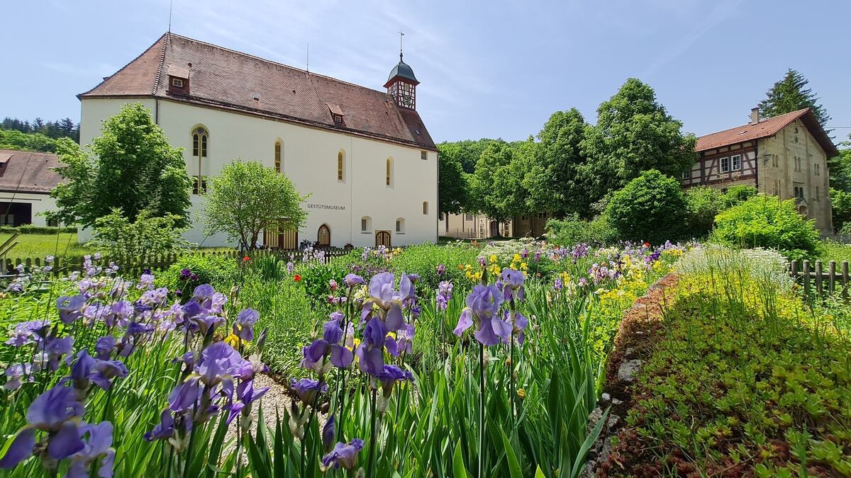 Der Irisgarten der Klosterkirche in Offenhausen steht in voller Blüte. Angelegt wurde er 2008 aus einer privaten Sammlung von in der Region zu findenden, wildwachsenden und kultivierten Arten und Sorten. Die Iris gehört zu den Liliengewächsen. Ihr ursprünglicher Lebensraum ist Kleinasien, woher sie vermutlich durch die Kreuzzüge ihren Weg auf die Alb fand. Ein Ausflug nach Offenhausen lohnt sich nicht nur wegen des Gartens. In der Klosterkirche ist heute das Gestütsmuseum untergebracht, das dienstags bis freitags von 14 bis 17 Uhr, samstags von 13 bis 17 Uhr sowie sonn- und feiertags von 11 bis 17 Uhr geöffnet ist. Hinter der Kirche und den benachbarten Stallungen des Haupt- und Landgestüts Marbach entspringt die Große Lauter, gespeist aus dem Wasser von fünf Quellen, darunter auch eine »Krankenquelle«, der die Nonnen heilende Wirkung zuschrieben. (ma)