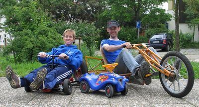 ST. JOHANN-WÜRTINGEN. »Blaue Flecken gibt's halt«, erklärt Kathrin Kitsch, 33. Keinen Zentner schwer, schwingt sie sich auf ihren roten Renn-Bobby und zeigt die gefährdeten Stellen oberhalb ihres Allerwertesten, wo der Kindersitz im Rennen die Lende malträtiert. Das Bobbycar- und Seifenkistenrennen des Würtinger Soifa-Bobby-Clubs ist nichts für Zartbesaitete und Hasenfüße. »Eher was für große Kinder«, findet Ehemann Horst Kitsch, 36.