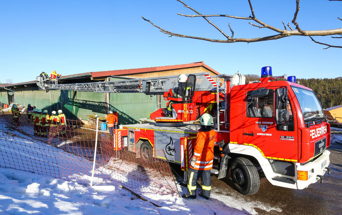 Weil es in der Schäferei Fauser bei Pfronstetten brannte, rückte gegen 9.30 Uhr ein Großaufgebot an Feuerwehren aus der Umgebung an, darunter die Abteilung Gammertingen mit einer Drehleiter.