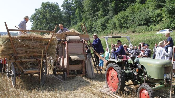 Ernte anno dazumal und Brezeln schlingen beim Bäcker: Für die Passagiere war’s eine ebenso informative wie kurzweilige Fahrt. FOTOS: MA