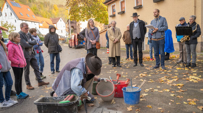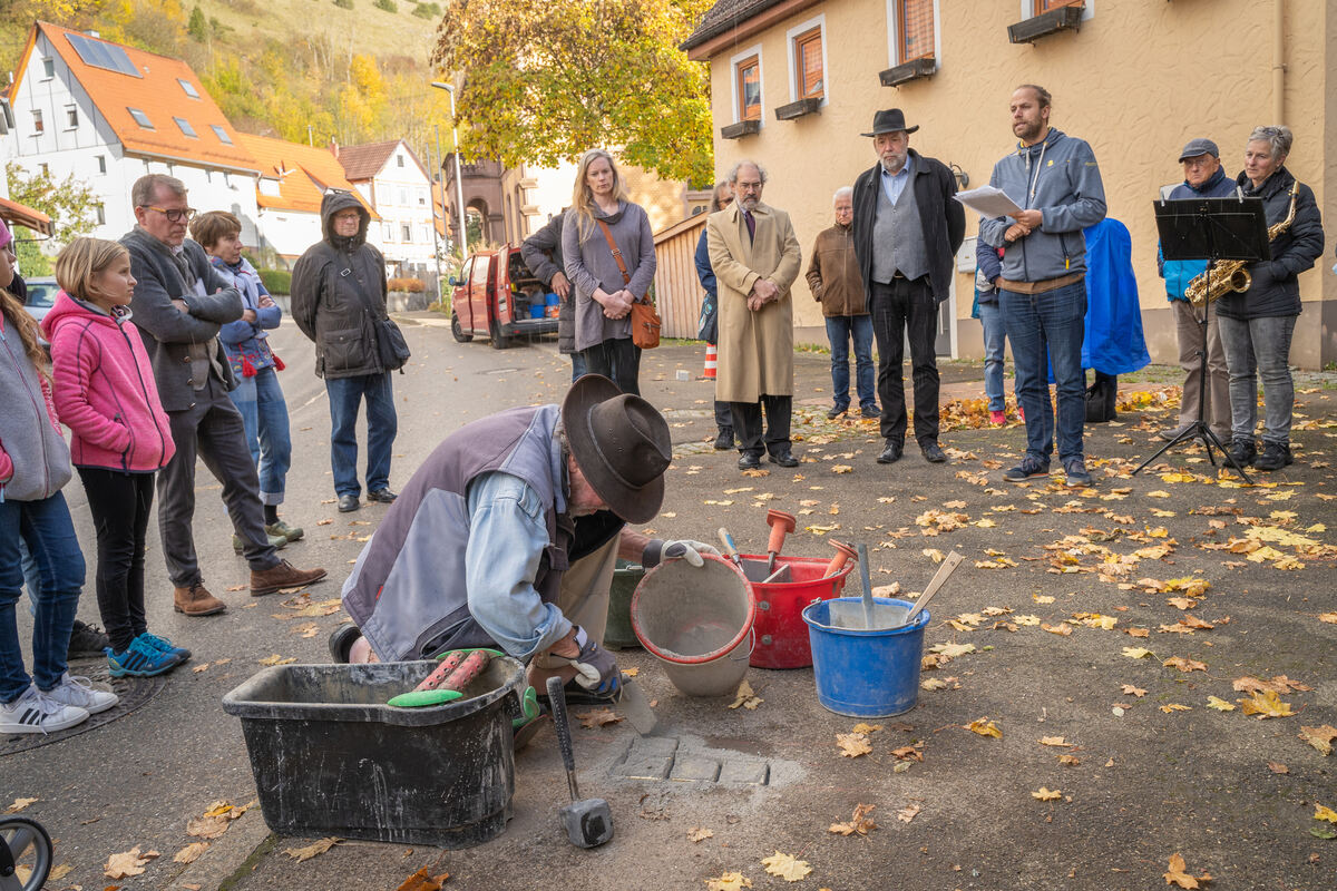 Lebendige Anteilnahme: Begleitet von vielen Interessierten verlegte Gunther Demnig Stolpersteine. FOTO: STEINHÄUSSER
