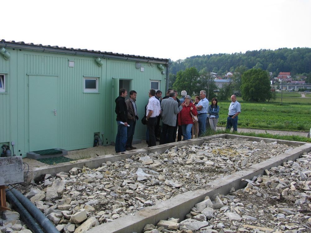 Klein, aber mein? Gemeinderäte besichtigen die neuen Wohncontainer.