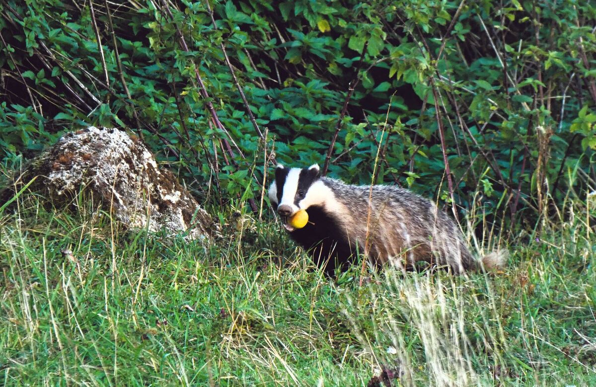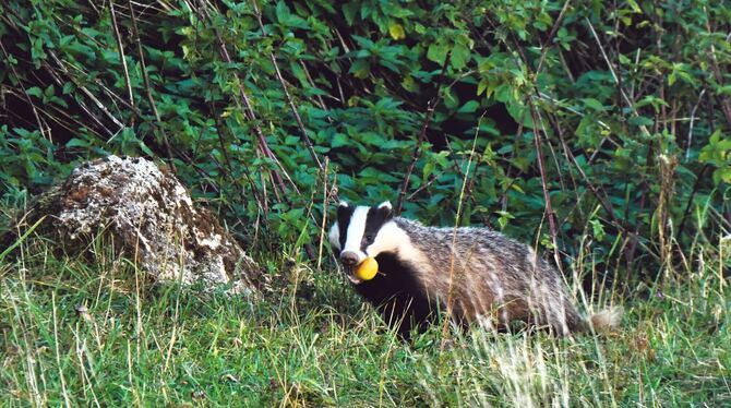 Der größte einheimische Marder besucht deshalb sehr gerne Obstwiesen oder -gärten. Heruntergefallene, süße oder leicht gärende Äpfel und Birnen, aber auch Zwetschgen oder Pflaumen sind im Herbst seine Leibspeise. Leider, so Künkele, fallen nicht wenige Dachse bei ihren nächtlichen Streifzügen zu den begehrten Früchten dem Straßenverkehr zum Opfer. (GEA)