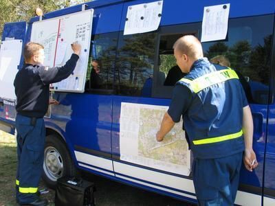 Per Karte und Magnettafeln zeichen die THW-Leute den Stand ihrer Zugtruppe am Einsatzort nach.