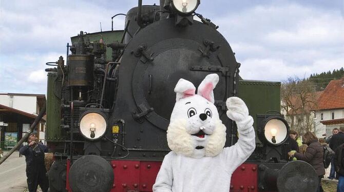 Steigt unterwegs mit ein und verteilt Süßigkeiten: der Osterhase. FOTO: PR