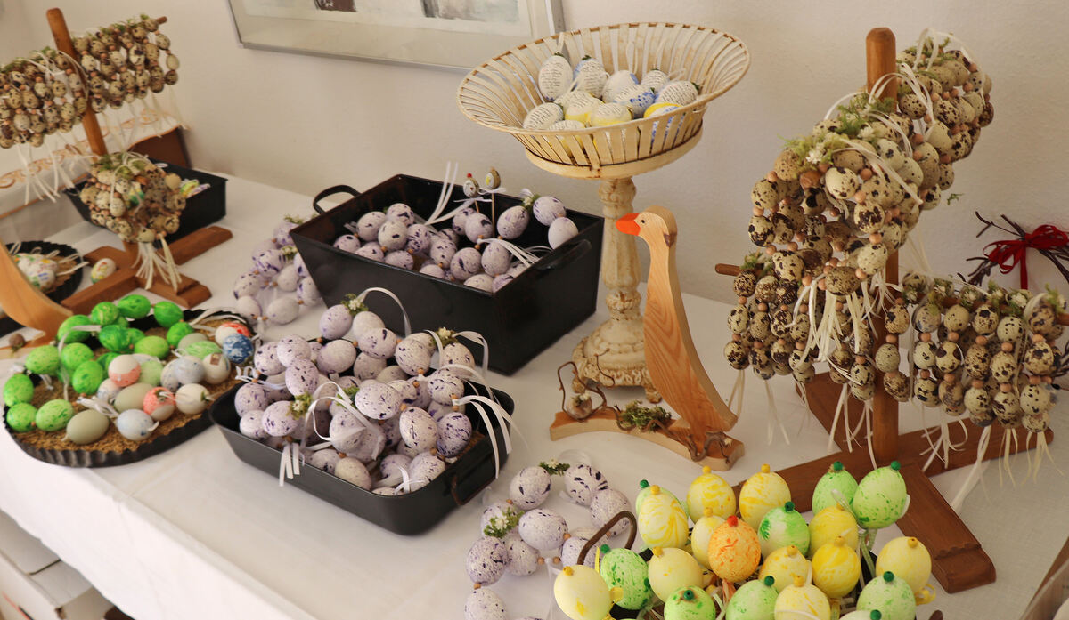 GOMADINGEN-DAPFEN. Die Nachfrage nach den Dapfener Eiern ist auch in diesem Jahr sehr groß. Mehr als 16 000 Euro konnten bereits zugunsten der Ukraine-Hilfe beim Eiermarkt aus dem Verkauf eingenommen werden. Nun stocken die Dapfener Eierfrauen laufend auf, um bis Ostern gut mit den kunstvoll gestalteten Eiern eingedeckt zu sein. Ursula Bogner-Kühnle beschriftet nahezu ohne Unterlass die traditionellen Dapfener Brauchtumseier, auch Eier mit Scherenschnitt und zu Kränzen gebundene, marmorierte Eier werden weiter produziert. »Wir wollen unbedingt der großen Nachfrage gerecht werden und so viel Geld wie möglich für die Ukraine einnehmen«, sagt Bogner-Kühnle, die den Eiermarkt von 13 bis 17 Uhr täglich öffnet. (GEA)