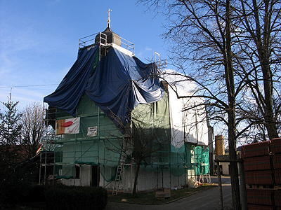Versteckt unterm Plastikzelt wird die St.-Jakobs-Kapelle in Oberwilzingen grundlegend renoviert.