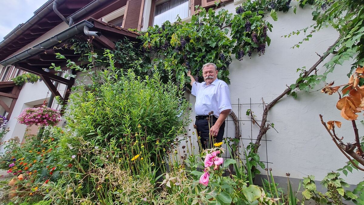 Karl-Heinz Klingler und sein gar nicht alb-typischer Pracht-Weinstock.