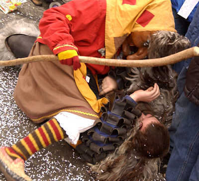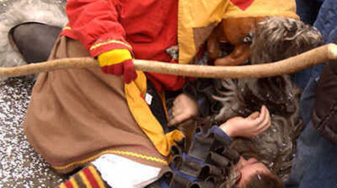 Insbesondere die Zuschauerinnen beim Narrenumzug gestern in Trochtelfingen durften nicht zimperlich sein: sie waren für die Hexen eine beliebte Beute.