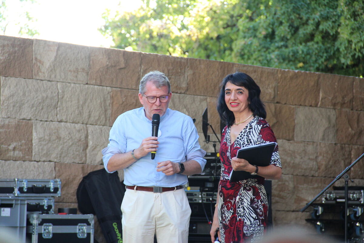 Bürgermeister Mike Münzing und Muhterem Aras auf dem Podium. FOTO: WURSTER