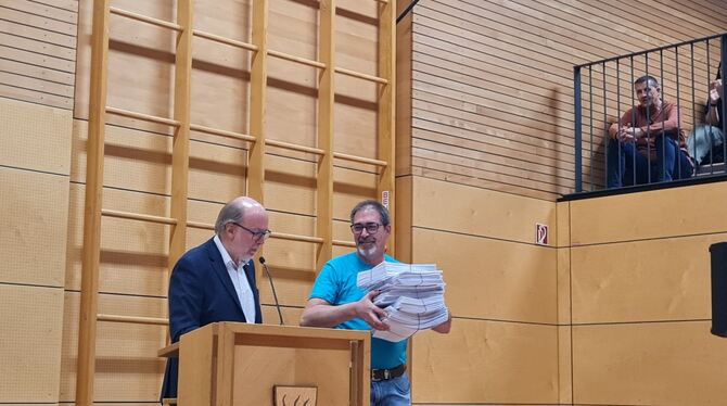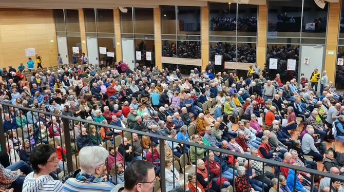 Besorgte Mienen, klare Meinung: Die Bürger, nicht nur aus Münsingen, protestierten auch mit Plakaten gegen die KV-Pläne. FOTOS: SCHRADE