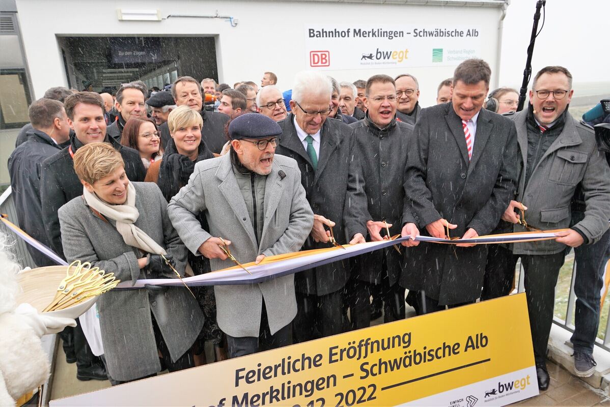 Wer zuletzt lacht: Verkehrminister Winfried Hermann (mit Mütze) und Ministerpräsident Winfried Kretschmann haben Spaß.