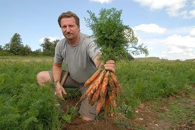 Andreas Werner auf dem Rübenacker. Im Gegensatz zur Steckrübe hatten Karotten nie Imageprobleme.
