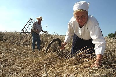 Teamwork gab's schon anno dazumal. Die Undinger mit Habergeschirr und Sichel bei der Getreideernte.