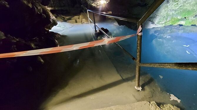 Der See in der Sonnenbühler Nebelhöhle tritt über seine Ufer