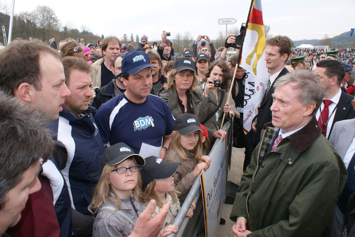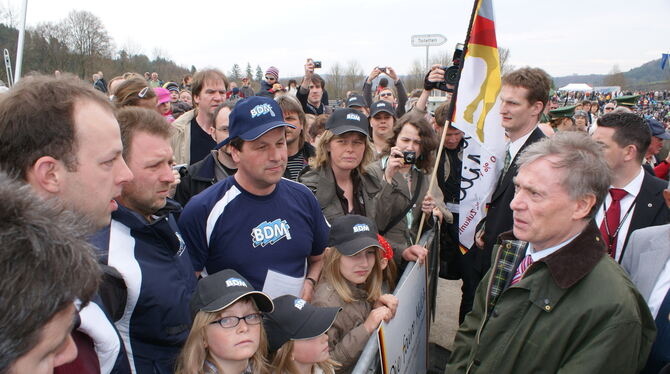 Mehr als 2.000 Menschen waren anlässlich des Besuchs des damaligen Bundespräsident Horst Köhler im April 2009 ins Haupt- und Landgestüt Marbach gekommen, um ihn zu sehen. Köhler nahm sich Zeit für kurze Gespräche am Wegesrand.