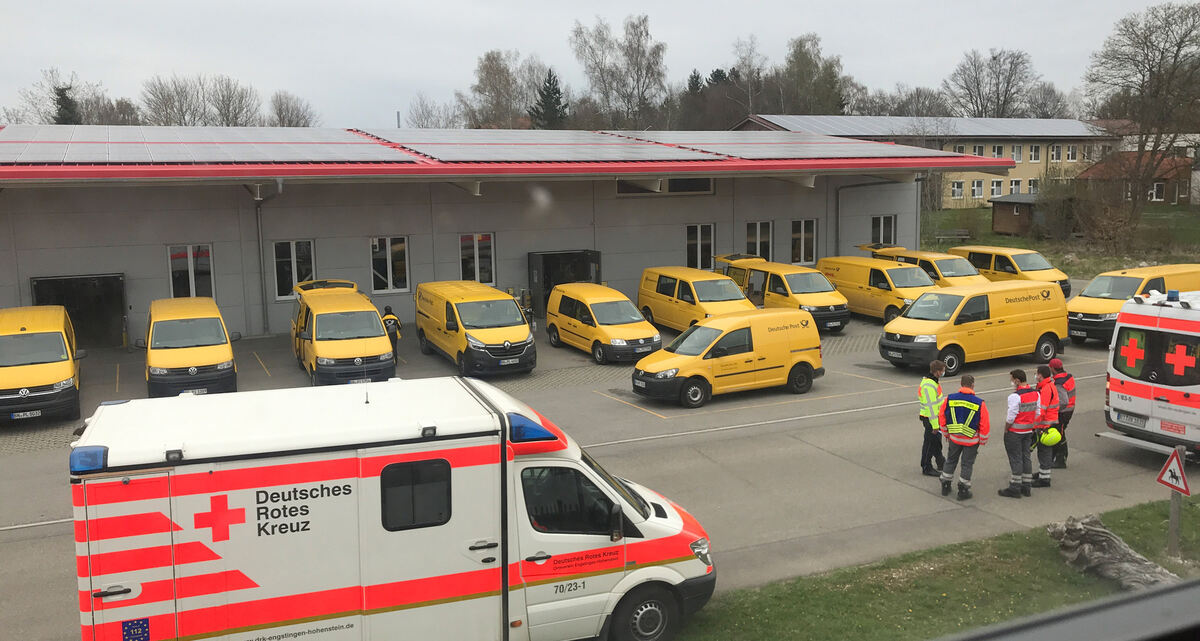 ENGSTINGEN-HAID. Ein Feuerlöscher hat einen größeren Einsatz der Rettungsdienste ausgelöst. Der Feuerlöscher kam als Paket im Zustellstützpunkt DHL Deutsche Post im Gewerbegebiet Engstingen-Haid an. Ordentlich als solcher deklariert, sagt die Pressestelle des Polizeipräsidiums Reutlingen. Das Paket mit dem empfindlichen Inhalt fiel auf den Boden, dabei wurde der Feuerlöscher aktiviert. Nach jetzigem Stand fing er dann unter Druck an auf dem Boden zu kreiseln und sich auf eine kurze Reise durch die Verladehalle zu machen. Außer Kontrolle traf er zwei Mitarbeiter des Verteilzentrums an den Knöcheln, die dabei laut Aussage der Pressestelle der Polizei nach jetzigem Stand verletzt wurden.
