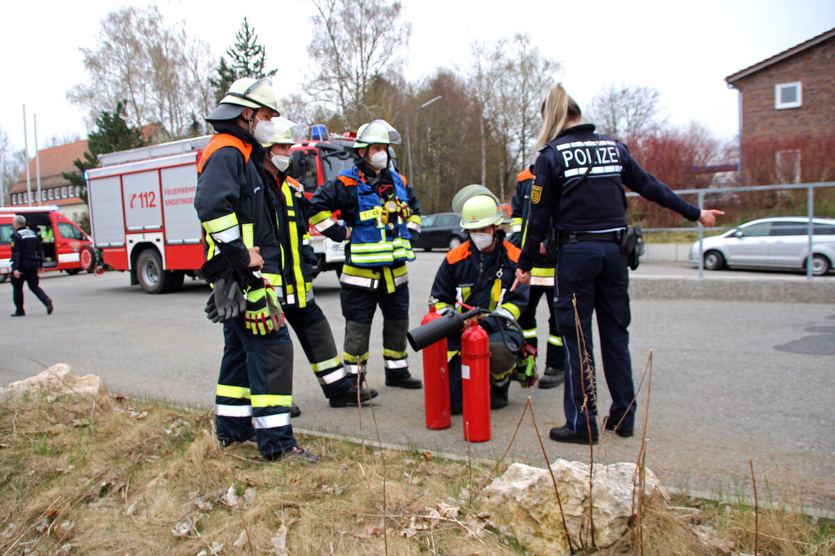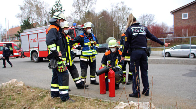 In den Morgenstunden kursierte das Gerücht von einer »explodierten Paketbombe«. Die Polizei konnte hierzu Entwarnung geben. Bei der Feuerwehr löste der Vorfall eine sogenannte B4-Meldung aus – »Explosion«. Wie für einen solche Meldung vorgesehen, rückte die Engstinger Wehr mit mehreren Fahrzeugen aus, auch Kreisbrandmeister Wolfram Auch, das Rote Kreuz und die Polizei fanden sich vor Ort ein. (GEA)