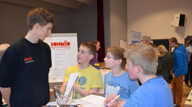 Vielleicht bald Kollegen? Nicht nur Unternehmer, sondern auch Auszubildende informierten die Schüler über Jobs und Chancen. FOTO: HOMOLKA