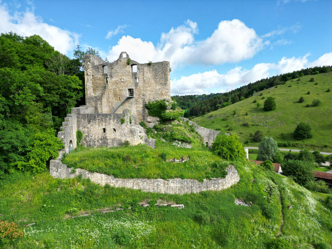 Bergfriede wie der der Burg Hohenhundersingen hatten vor allem repräsentative Funktion.
