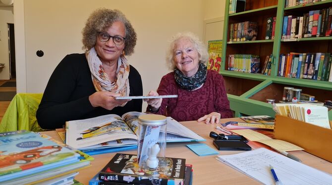 Alles noch analog: Maureen Roller (links) und Rita Störk lieben ihre Arbeit in der kleinen St. Johanner Gemeindebücherei.