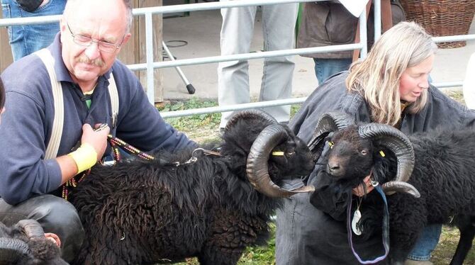 Dr. Horst Roller und Uta Reichenbach mit ihren Ouessant-Schafen. FOTO: WURSTER