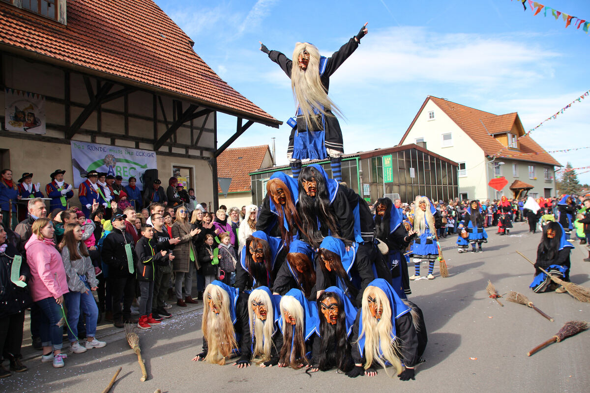Eine Hexenpyramide beim 31. Umzug in Hohenstein-Oberstetten. FOTO: Leippert