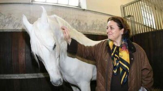 Zweimal Adel: Prinzessin Alia von Jordanien mit dem zehn Jahre alten Marbacher Vollblutaraber-Schimmel Dschehin.