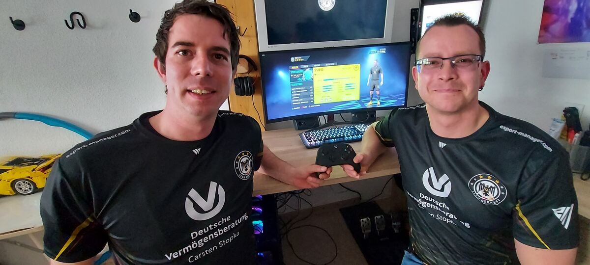 SONNENBÜHL. Zum Abschluss der Gruppenphase des E-Sport-Eurocups 2022 hat die deutsche Fußball-Nationalmannschaft, in der auch die Sonnenbühler Brüder Uwe und Steffen Winter virtuell mitkicken, gegen Polen die nötigen Ergebnisse eingefahren, um nach Siegen gegen Georgien und Belgien als Gruppen-Erster ins EM-Viertelfinale einzuziehen.