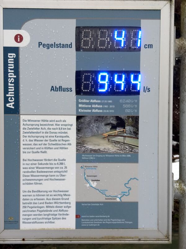 Der digitale Pegelmesser am Ach-Ursprung liefert ständig aktuelle Daten.