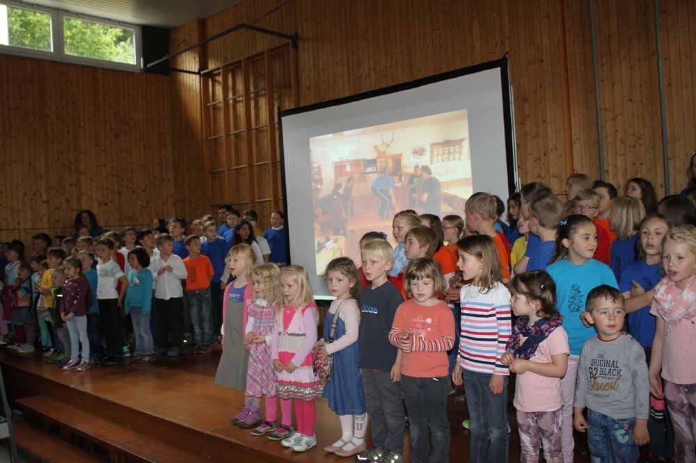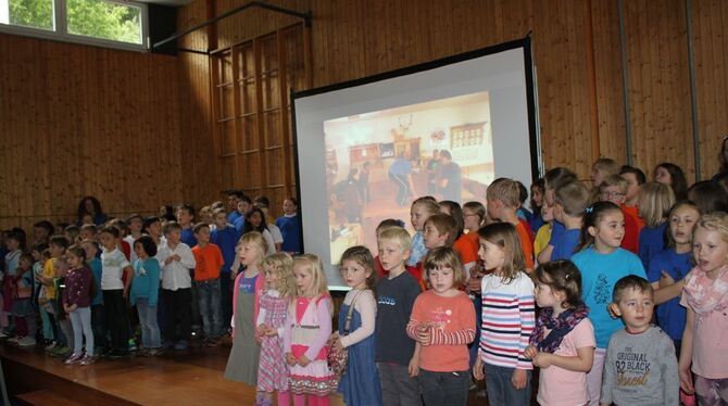 Der Schulchor sang gemeinsam mit den Kindergartenkindern »Ein Hoch auf uns«. FOTO: IN