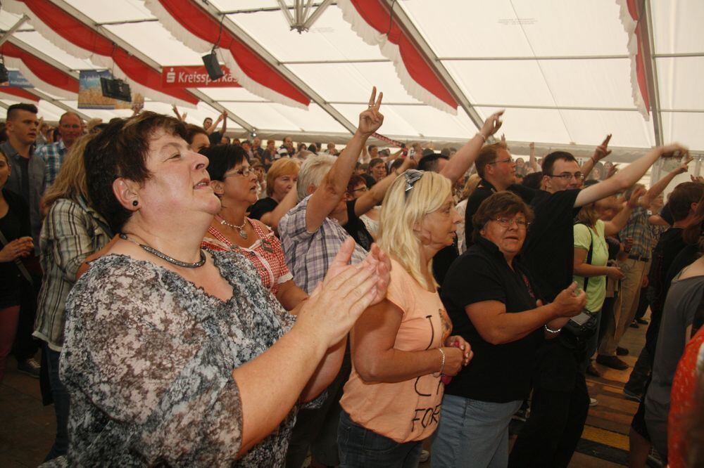 Warum nicht mal eine ganz große Geburtstagsparty feiern? Das dachten sich die Funktionäre des Musikvereins Mehr-stetten und luden zum 75. Jubiläum ganz einfach die ganze Blasmusik-Familie der Region ein. Mehrstetten wurde zum Schauplatz des Kreismusikfests. Die dreitägige Riesensause startete mit einer Dirndlparty am Freitag, ging am Samstag mit den Schürzenjägern weiter und erreichte gestern mit einem prächtigen Festzug seinen Höhepunkt
