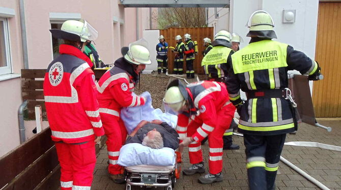 Das DRK Mägerkingen-Hausen, hier bei einer Übung, ist für die Gesamtstadt zuständig. Im vergangenen Jahr waren die vier Helfer vor Ort (HvO) im gesamten Stadtgebiet 249 Mal im Einsatz. ARCHIVFOTO: DRK