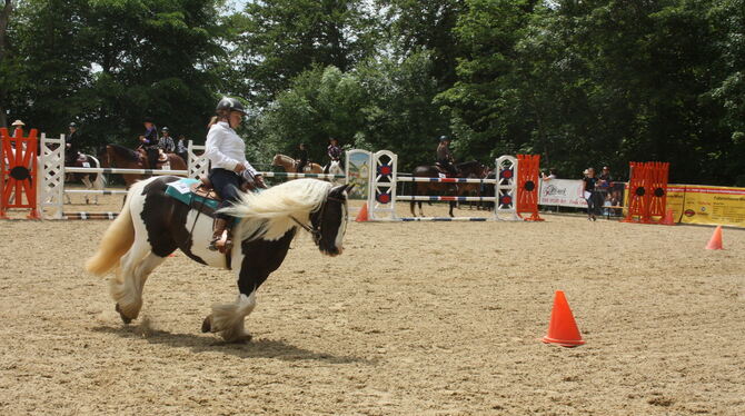 Der Wechsel von Schritt, Trab und Galopp bestimmt die Western Horsemanship. Gut eine Minute bleiben Reiter und Pferd um die Pattern – die Aufgabenstellungen – zu reiten. Dabei wird zum einen die korrekte Sitzhaltung des Reiters bewertet, zum anderen soll das Pferd die Manöver sauber ausführen und der vorgegebenen Bahn exakt folgen. »Die Kunst dabei ist, dass man von außen so wenig Hilfestellungen des Reiters wie möglich erkennen kann«, erklärte Susanne Schädler, Turnierleiterin und die Westernbeauftragte der Trochtelfinger Reiter.