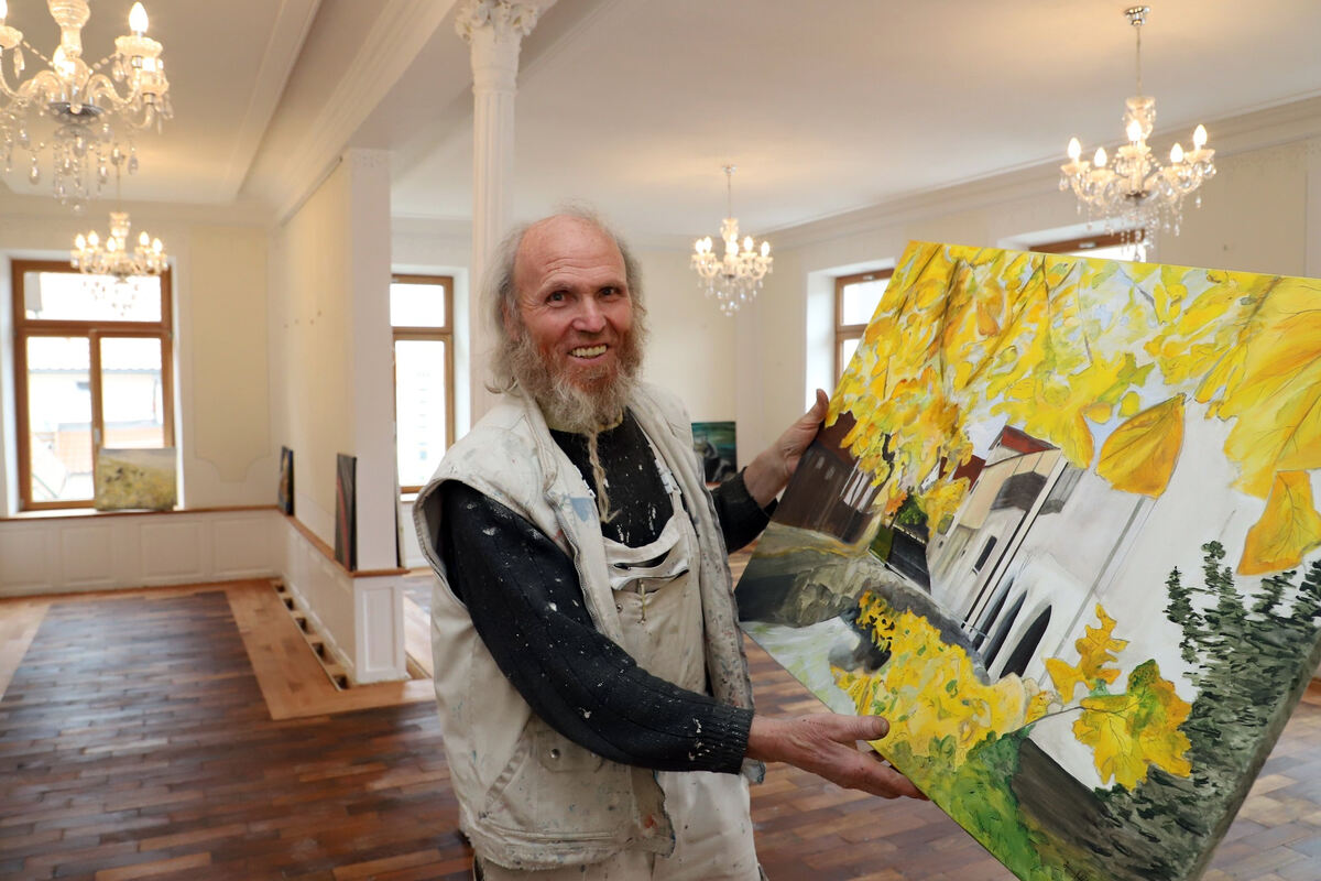 Johann Hölz präsentiert am Sonntag in der Alten Schule in Undingen die erste große Ausstellung mit Hobbykünstlern aus Sonnenbühl. Zu sehen sind auch seine eigenen Bilder wie diese Impression vom Trochtelfinger Bräuhaus. FOTO: BAIER