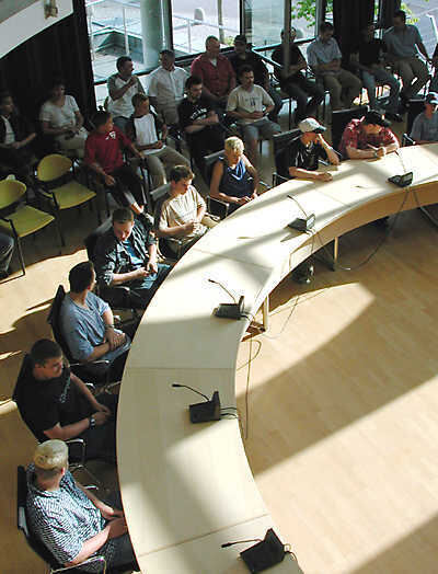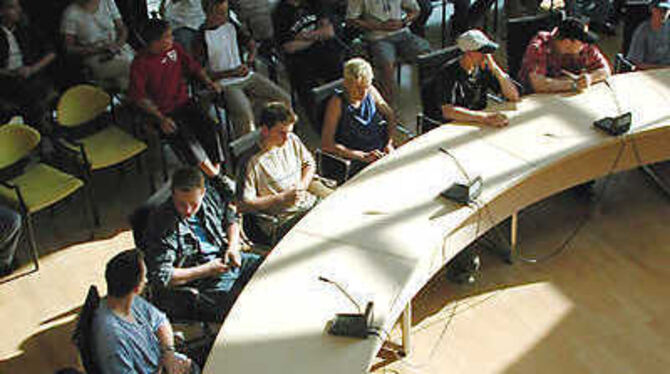 Junge Menschen am Ratstisch: Aus ihren Hütten und Bauwagen waren sie gekommen, um mit der Gemeinde über Nutzungsvereinbarungen für die Treffs zu sprechen.