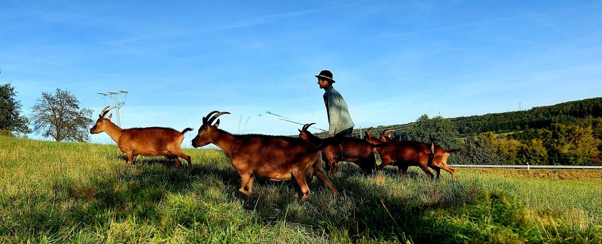 Die Sonne steht schon tief. Achim Schäfer holt die Ziegen von der Weide. Was idyllisch aussieht, ist harte Arbeit.