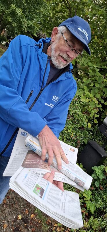 So liegt die Zeitung nicht richtig im Kasten, sie würde von Regen durchnässt.