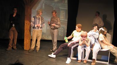 »Der Besuch der alten Dame«, gespielt von der Theater-AG des Gymnasiums. Die Bürger von Güllen erwarten die Ankunft der Multimilliardärin Claire Zachanassian.