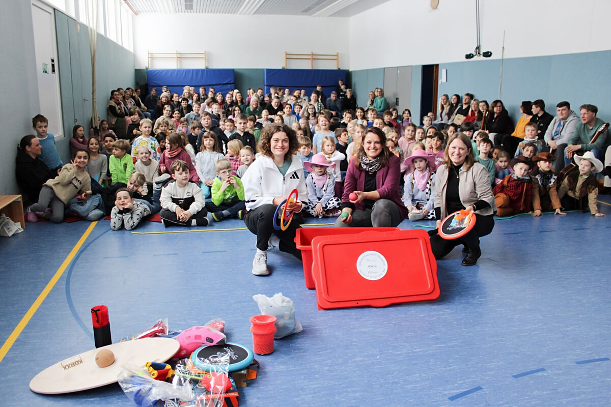 Eine bunte Box voller Sportgeräte für die Grundschule Kleinengstingen