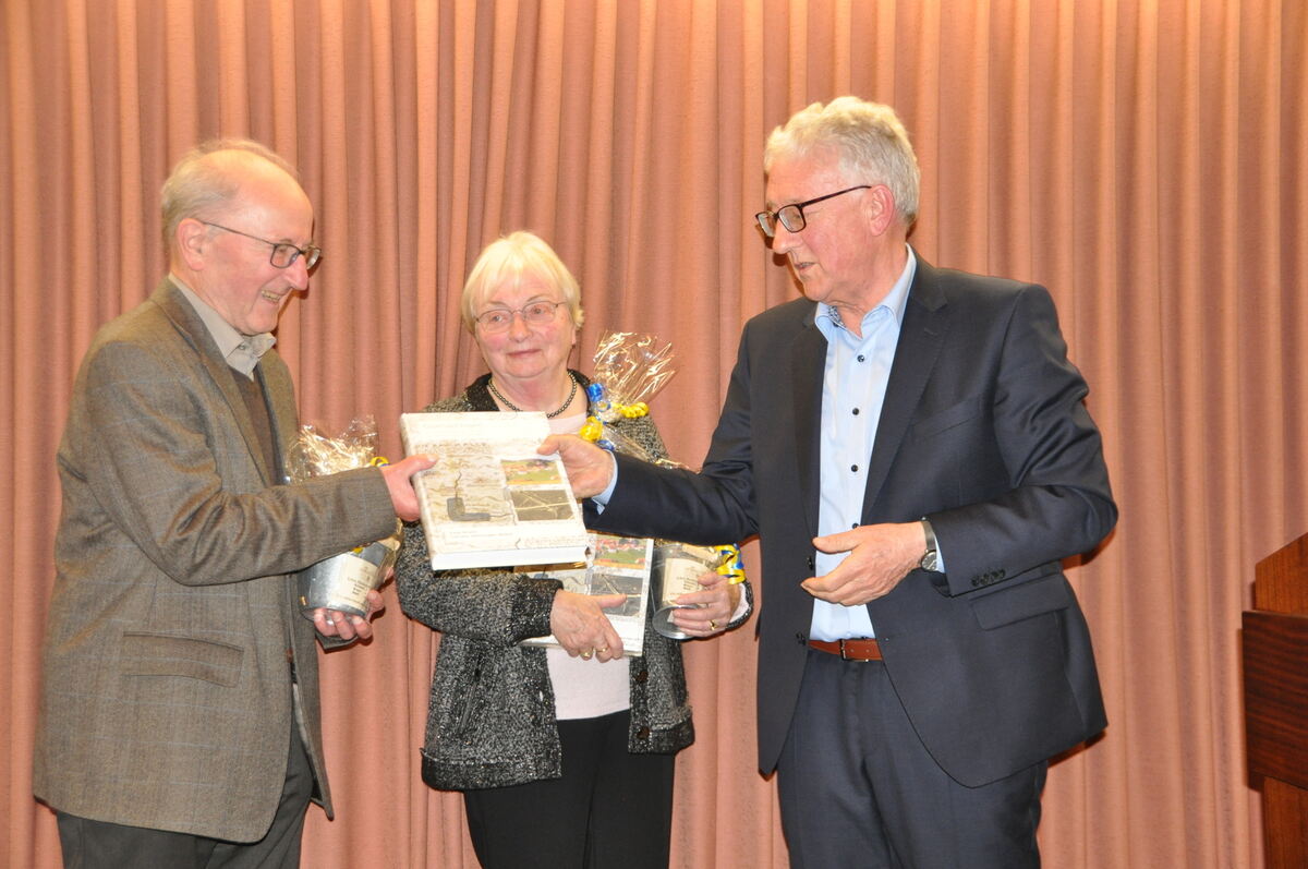 Das neue Gomadingen-Buch ist nach langer Recherche fertig (von links): Professor Dr. Rainer Loose, Christa Vöhringer-Glück, Bürgermeister Klemens Betz. FOTO: BIMEK