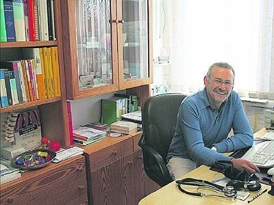 Hansjörg Kister zog vor 18 Jahren von Stuttgart nach Upfingen, um sich dort als Landarzt niederzulassen. 12 bis 14 Stunden arbeitet er täglich, bei sinkendem Gehalt. Das Lachen hat er dennoch noch nicht verlernt.